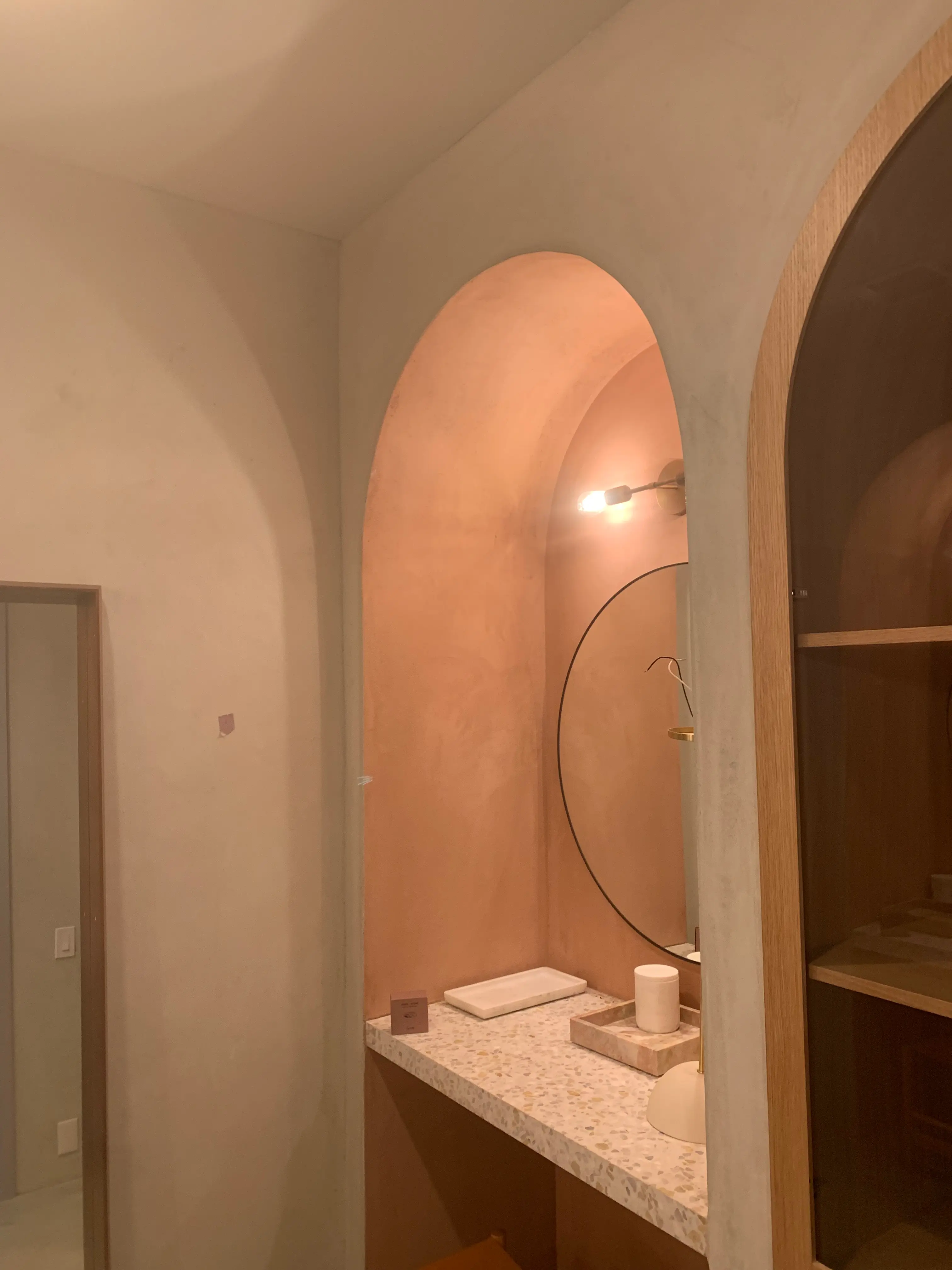 Originating from Morocco, Tadelakt is a waterproof plaster ideal for wet areas. It offers a soft, smooth surface that can be polished to a high gloss.